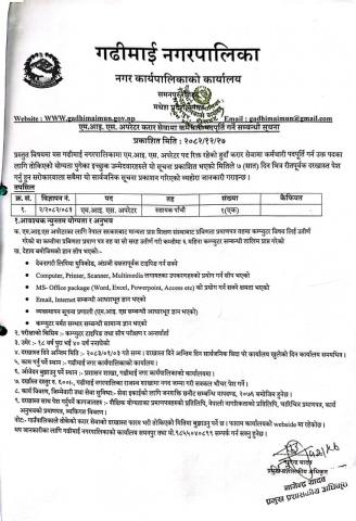 » एम.आई.एस. अपरेटर करार सेवामा कर्मचारी पदपुर्ती गर्ने सम्बन्धी सूचना !